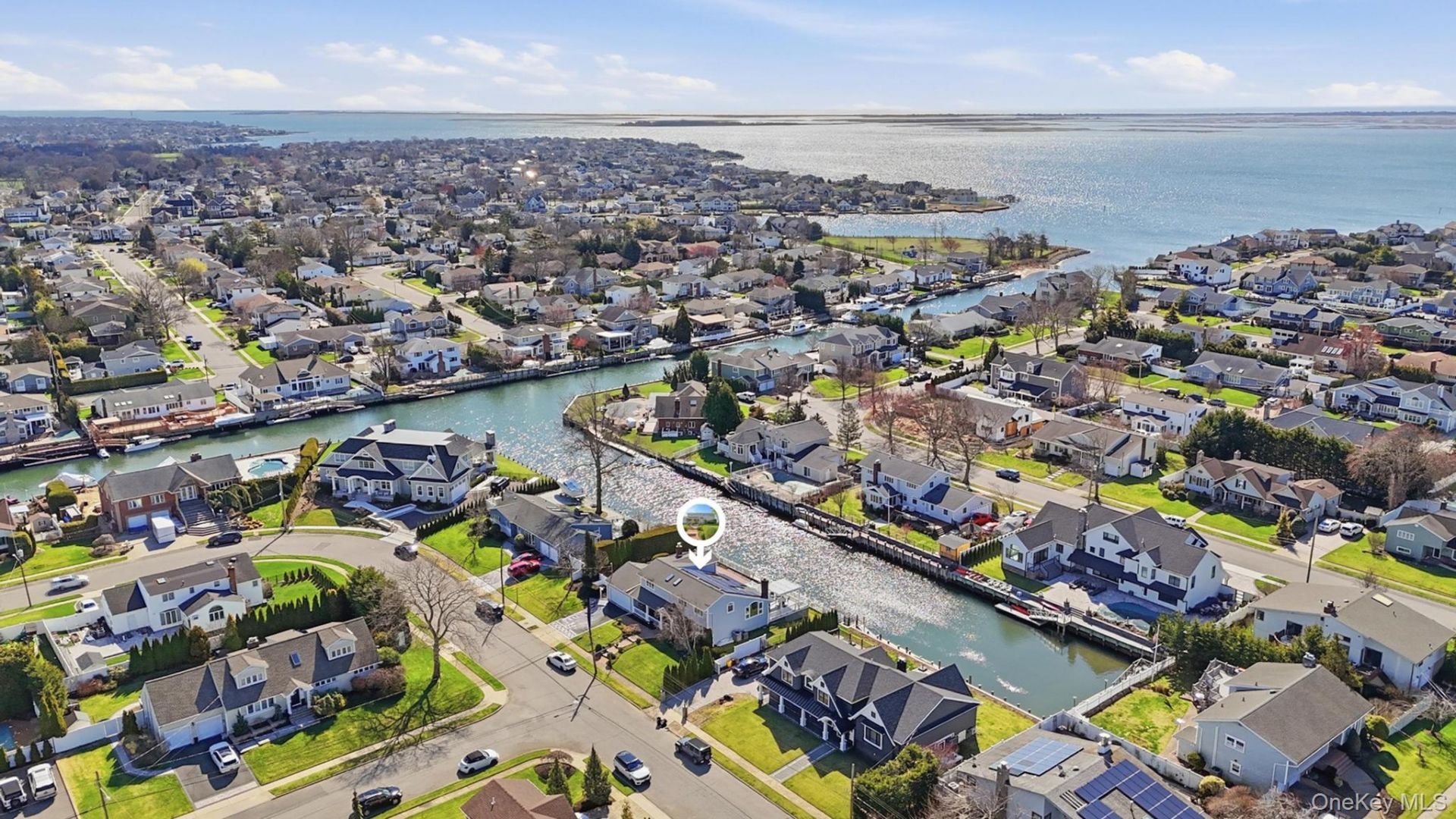 Immaculate colonial set on a quiet, tucked-away residential street in the heart of Bar Harbor, offering 110 feet of waterfront and a layout built for both everyday living and entertaining. A true boaters' location with a quick ride to the open bay right at the end of the canal. Located within the Massapequa School District, this home is zoned for Birch Lane Elementary.This 4 bedroom, 3 bath home features over 2,700 square feet with oak floors throughout, vaulted ceilings, hi hats and is flooded with natural light, highlighted by two skylights and two sets of sliders leading to a massive Trex deck and brick & paver patio. A standout architectural feature is the upper-level catwalk overlooking the sun-drenched living room and formal dining area, complete with a wood burning fireplace, creating an open, airy feel throughout. The primary suite offers a full bath, raised sitting area and electric fireplace, adding a comfortable, private retreat. The eat-in kitchen is designed to gather, complete with granite countertops, custom cabinetry, Wolf electric cooktop, and a large peninsula with seating. Just off the kitchen, a fully equipped granite wet bar with built-in speakers and direct patio access makes this a true entertainer's setup.Additional highlights include two-zone central air, crown molding, Andersen windows and doors, updated interior doors, 3 spacious bedrooms upstairs and a 4th bedroom on ground level. Convenient interior access from the two-car garage at two points, including entry into a mudroom/laundry area with utilities and a slop sink.Exterior features include cedar shake vinyl siding, a welcoming front porch, in-ground sprinklers, blacktop driveway with Belgian block accents, and floating dock access along the bulkhead. Equipped with two 200 amp panels plus sub panel. Solar panels are leased.A rare combination of space, waterfront, location, and layout in one of the South Shore's most desirable communities.