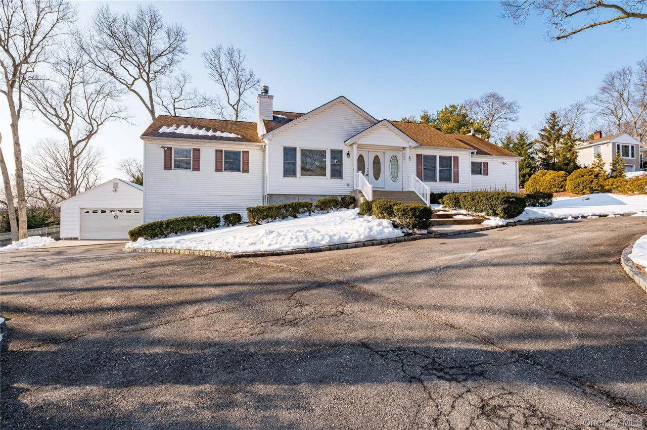 Custom build in 2002 this beautiful sprawling Ranch offers significantly sized rooms. Open concept living at its best. Great Room/living room boasts dual fireplace leading into the den, which is open to the formal dining room. Large eat-in kitchen with cathedral ceiling. Sliders to the outdoor deck. Plenty of room for entertaining both inside and out. The Primary bedroom has an on-suite and additional 2 bedrooms and full bath. This house is solid, ultra clean, well built with great bones and has many extra's like a blue-light air purification system throughout the house, propane cooking, large full-basement with 9-foot ceilings. 2 electric heat pump units that service the house with central air and heat was installed in 2022. There is also a 1000-gallon oil tank. 24 zone in-ground sprinklers. Expansive steel double doors in the basement lead to tandem indoor parking from the 2-car garage. In addition, there is a detached 2 car garage and an oversized circular driveway. Car enthusiasts... this is your house! WOW!!!!