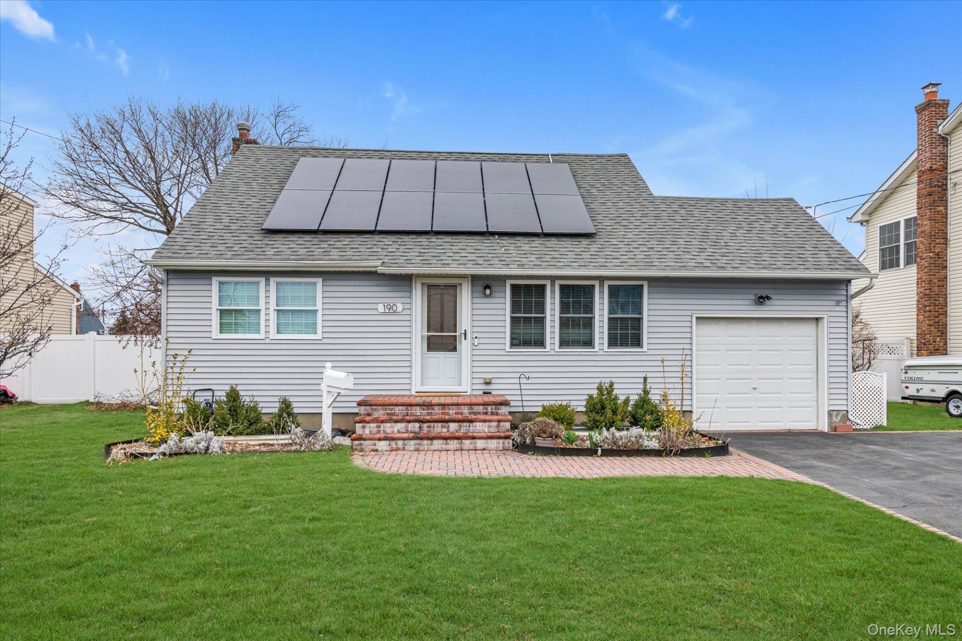 Lindenhurst Village 4-bedroom 1 bath cape, redone dining room with custom wainscoting, crown molding, LED hi-hats, window shades, French doors to living room. Living room garage conversion with vaulted ceilings. The granite kitchen has a new stainless refrigerator and dishwasher. Entire new tile and marble bath with handheld body and rain showers. New hardware throughout the house. 1st level king bedroom with custom closet and wainscoting. New basement stairs, rear exterior steps and patio, fire pit and side fencing. All other renovations are from 2013, including roof, windows, siding, kitchen, wood floors, sheet rock, insulation, electric service, gas hot air furnace, hot water heater and in-ground sprinklers. Whole house water filtration. Leased solar panels installed 2013. $113 monthly payment, $7800 remaining balance. Near Albany Elementary and Lt. Edward Weckerle Park. 31st Street is one way. $1,187 of total taxes are village.